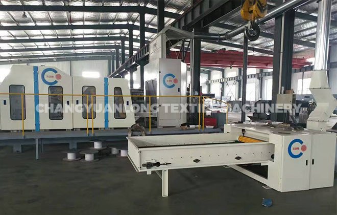 4. CYLSL-梳理机:该机为单锡林、双道夫、四杂乱、罗拉剥取。该机所有辊筒都经调质和定性处理后,再精密加工。墙板由铸铁加工而成。并配有吸风装置,可减少清机次数。该机具有分梳能力强,产量高等优点。