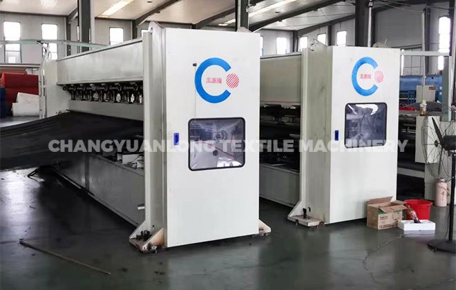 6. CYLZC-针刺机:该机采用新型钢件结构,活动梁采用铁板制成,活动梁、针床梁、主轴都经调质、回火做定性处理。剥毛板、针床梁用蜗轮箱升降,方便调节刺针深度,针板为气压控制,电脑数控布针,进出辊、剥棉板和托棉板镀铬,连杆采用球墨铸铁加工成型。导向轴用 45#钢锻打,经过热处理精加工。